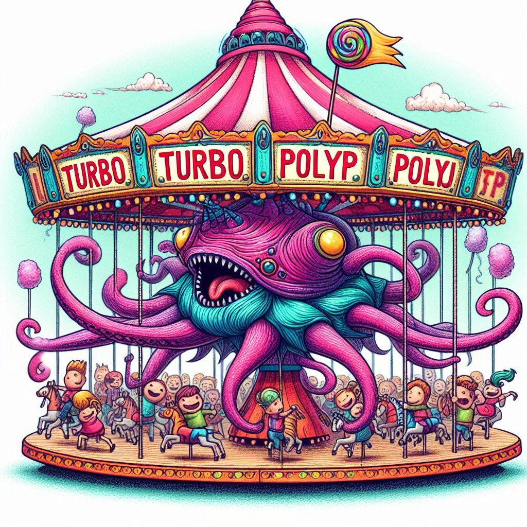 # Turbo Polyp (14 april 2024) v0.3 # The Lesser Gods # Intro: | D | Cadd9 | G | - | (4x) # Brug naar couplet: | F | F | E7 | ^E7 | # Couplet 1: | Am7 | C | Dm | F | (8x) Ik ga d’r best wel vaak in Die munten gaan op Hier moet je zijn geweest Haal die penningen non-stop De lichten gaan aan, oh ik loop het trapje op, Ik ga half zitten half staan, kom op, gas erop Ik draai alleen maar rondjes, elk rondje is anders, de beleving, het geeft me een opleving Het was de laatste keer in Weert oh wie de kleine stad niet eert... M'n haren lekker los En m'n lippen vol met gliploss # intermezzo De turbo poliep (4x) |: Am7 F | Dm E7 | | Am7 G | Dm E7 :| (2x dus) #Refrein: |: A | A E D | Turbopolyp | A | A D E :| # Guitar intermezzo (Joris) |: A | A E D | A | A D E :| # Brug naar couplet: | F | F | E7 | ^E7 | OK We gaan ook een beetje gas geven! # Couplet 2: | Am7 | C | Dm | F | (8x) De rookmachine aan Het muziekje is top Dit moet je ondergaan Pleur op met je achtbaan Hans zet hem nooit uit, oh ik loop het trapje op, onbevreesd, wat een beest, en druk op die knop Ik draai achterstevoren, en van ondere naar boven, de beweging, het geeft me veel bevrediging Er zit een gat in m'n portemonnee Deep down town Enschede M'n haren lekker los En m'n lippen vol met gliploss # intermezzo De turbo poliep (4x) |: Am7 F | Dm E7 | | Am7 G | Dm E7 :| (2x dus) #Refrein: |: A | A E D | Turbopolyp | A | A D E :| (herhaling, full salsa einde?)